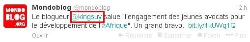 Twitter vous demandera sans doute de suivre quelques comptes pour commencer. Vous n’êtes pas obligés de suivre la procédure à la lettre, mais cela vous permettra déjà de commencer à bâtir votre réseau. Pensez à suivre @mondoblog !