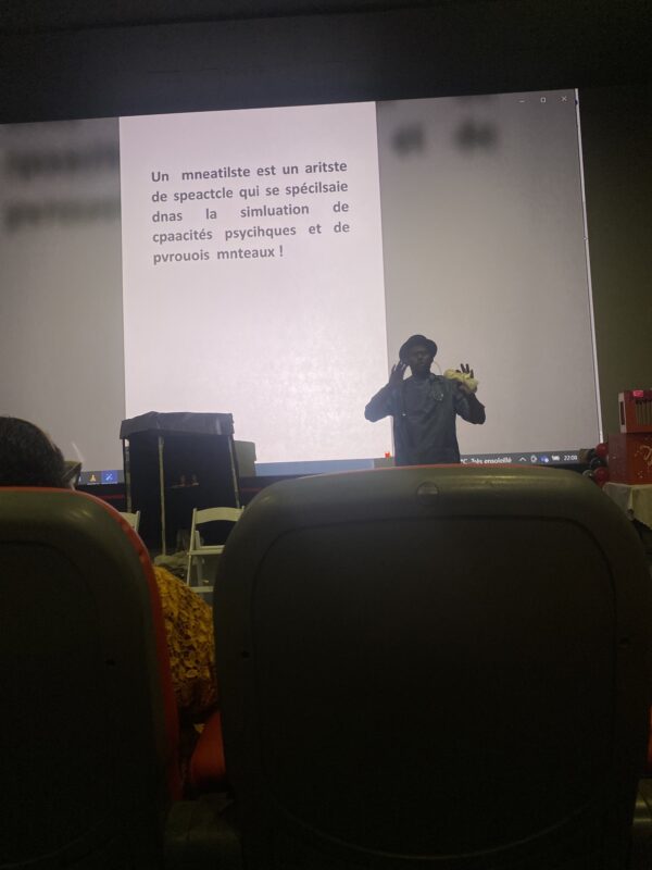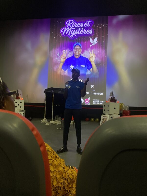 Recommandée par Etienne Talla et contactée deux jours plus tôt par l’humoriste Joel Kamega, plus connu sous le nom de Maori (c’est d’ailleurs son nom de scène), ici le promoteur ou producteur du spectacle (c’est comme tu veux), j’ai été invitée à prendre part au spectacle « rires et mystères ».